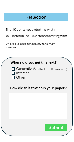 We built a working prototype in Google Apps Script that could detect student copy/pasting and help students reflect.